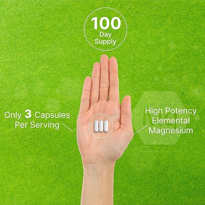 • Dosage & Servings – A 3 capsule serving size that provides 400mg of pure magnesium glycinate. Each bottle offers 300 capsules and over a 3-month supply.