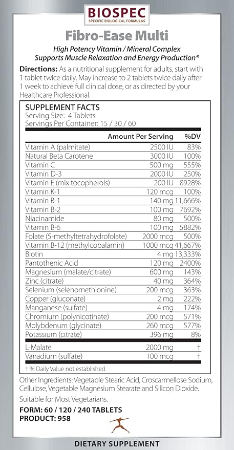 Fibro-Ease Multi - Contains Essential Vitamins & Minerals - Support Energy Production & General Health (240 Capsules)