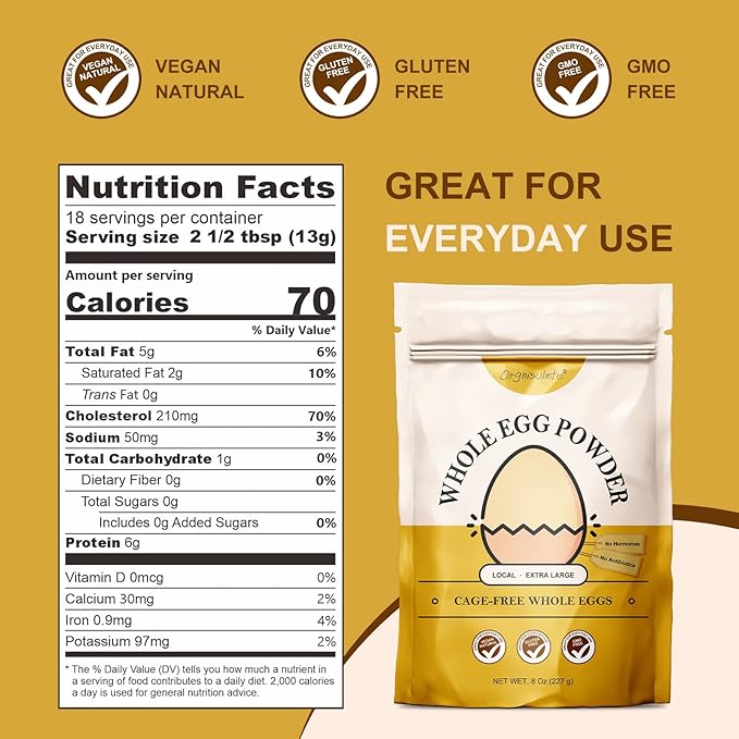 Orgnisulmte Whole Egg Powder, Fresh Pasteurized Egg Powder, All Natural, No Additives, Gluten Free Excellent for Baking Made in USA 8 Oz