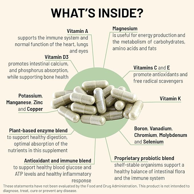 • SAFE INGREDIENTS: Ultra High multivitamin does not contain iron and is soy free! This comprehensive supplement has Vitamin A, Vitamin B6, Vitamin C, Vitamin D3, Vitamin E, Vitamin K, Niacin, Biotin, Calcium, Magnesium Citrate and much more!