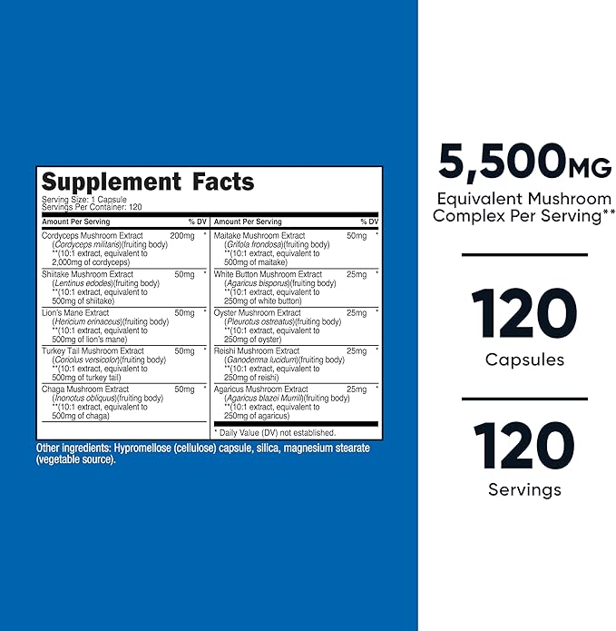 Nutricost Mushroom Complex Supplement, 120 Capsules - 10 Mushroom Blend (with Reishi, Maitake, Shiitake, Lion's Mane, and More) - Non-GMO and Gluten Free