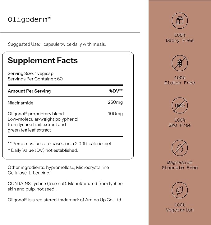 Quality of Life - Oligoderm - Premium Skin Support Supplement Featuring Oligonol and Niacinamide - 60 Capsules
