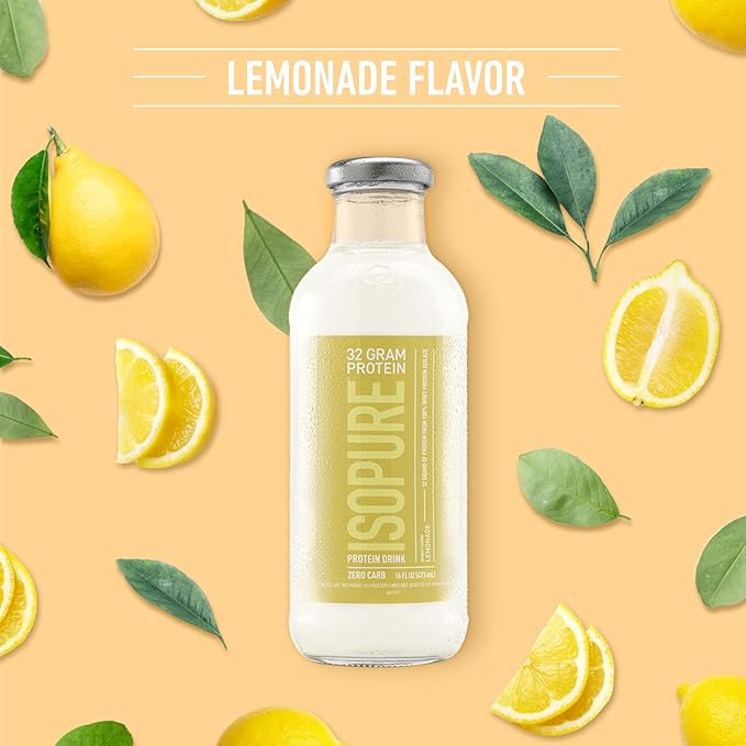 Isopure Zero Carb 32g Protein Ready-to-Drink, Whey Protein Isolate, Lemonade, 16 Fl Oz (12 Bottles)