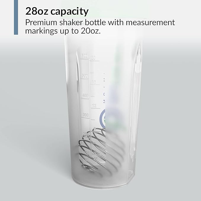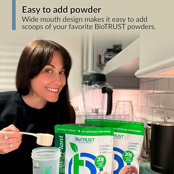 • 28 OZ BLENDER BOTTLE – BioTRUST premium 28oz shaker bottle with measurement markings up to 20oz