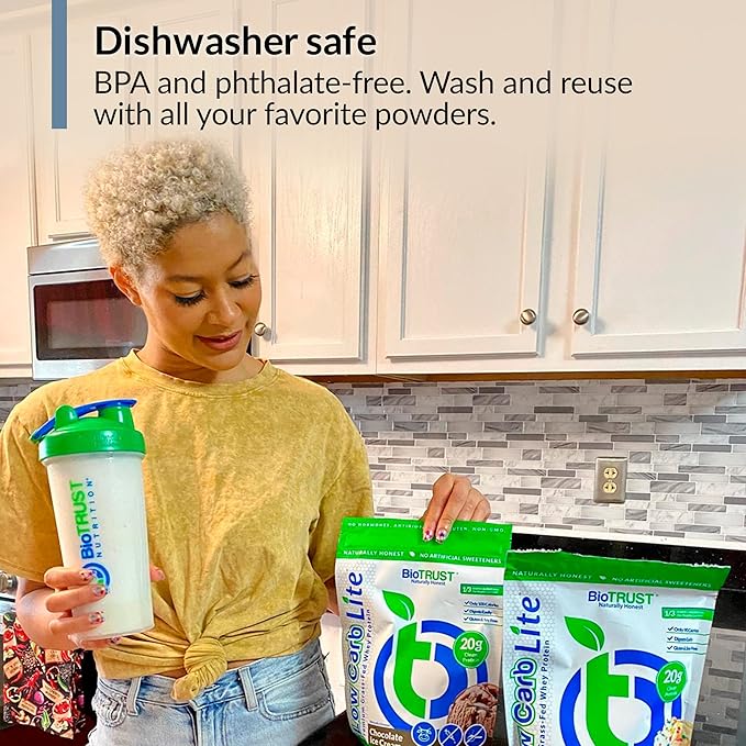 • DISHWASHER SAFE – BioTRUST blender bottles are BPA and phthalate-free; simply wash and reuse our drink shaker with all your favorite powders