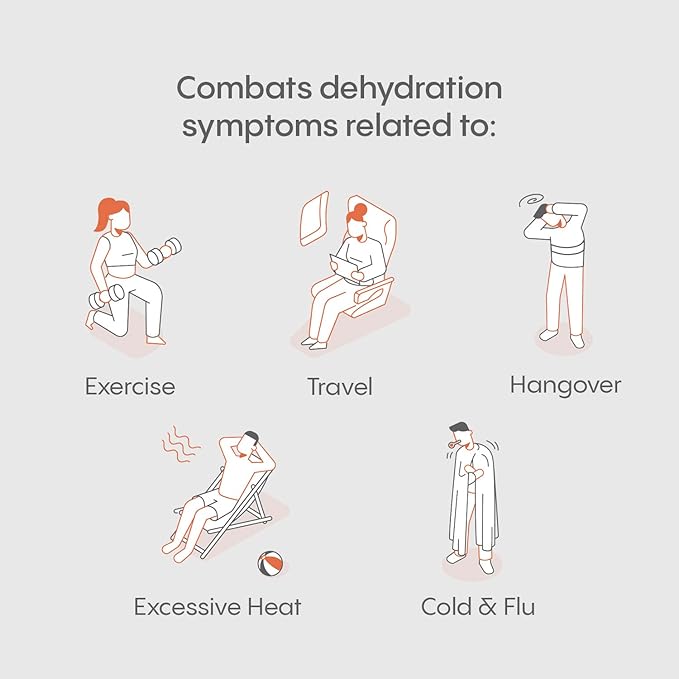 • Low Sugar for Accelerated Hydration: When it comes to rapid rehydration, glucose (sugar) is key. When combined with salt at the perfect ratio, glucose accelerates water and electrolyte absorption. But unlike sports drinks or electrolyte products, we use precisely the optimal amount for maximum absorption and not a gram more.