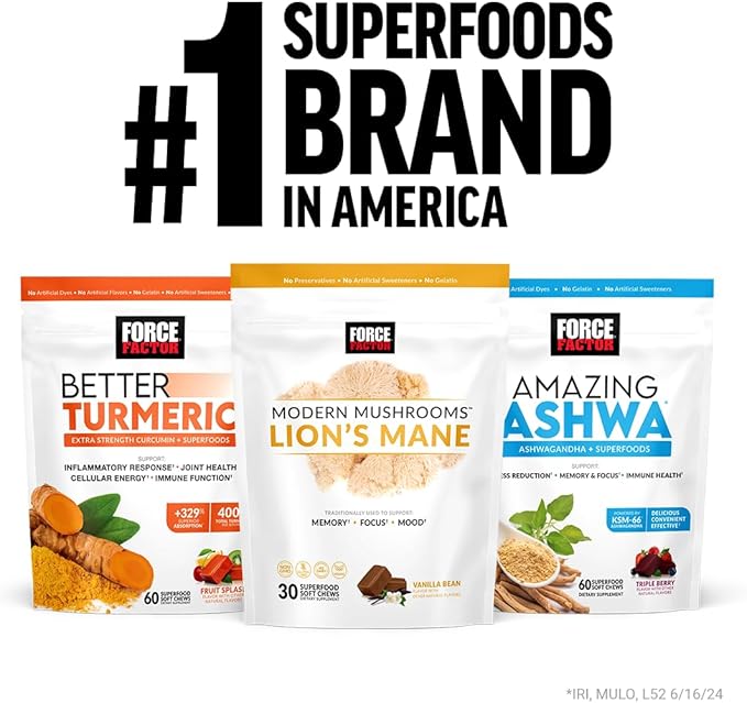 Force Factor Modern Mushrooms Capsules, Mushroom Supplement with Lions Mane, Turkey Tail, & Cordyceps to Support Energy, Focus, Immunity, & Digestion, 90 Vegetable Capsules