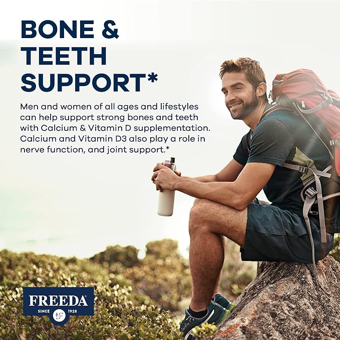 • PROUDLY MADE IN USA - Getting your daily dose of Calcium and Vitamin D3 is easy with Freeda*. Proudly Made in the USA in a GMP certified facility under strict quality assurance guidelines. Freeda: Trusted Since 1928.