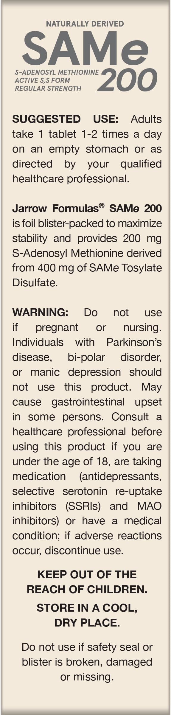 • Balanced Mood Support(1): One 20 count bottle of Jarrow Formulas SAMe 200 for up to a 20-day supply