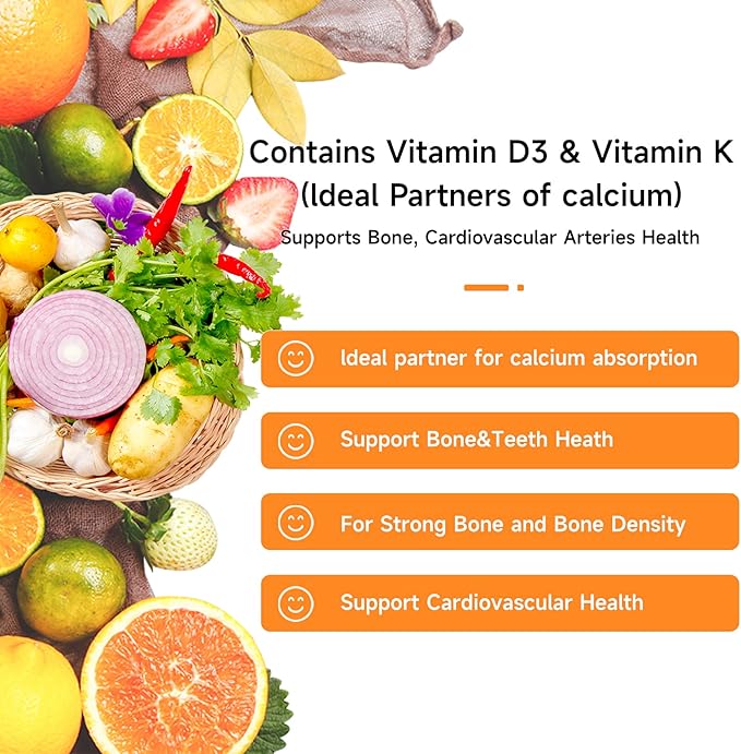 • Calcium for Bone Strength: Helps maintain strong bones and teeth, supports heart health, and promotes nerve and muscle function.