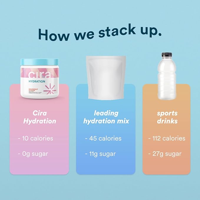 • Sugar-Free, No Artificial Dyes or Fillers: Say hello to your new thirst quenching drink of choice! We formulated Cira Hydration to be the best electrolyte mix available by including premium electrolytes without added fillers, artificial food dyes, or sugars - just hydrating performance results that you can actually feel - and believe us, we understand how important it is to hydrate (or rehydrate) after having a little too much fun.
