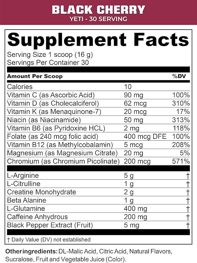 • BOOST STAMINA & ENDURANCE - YETI is formulated to increase stamina and endurance, allowing you to push through barriers and achieve new heights in your fitness journey.
