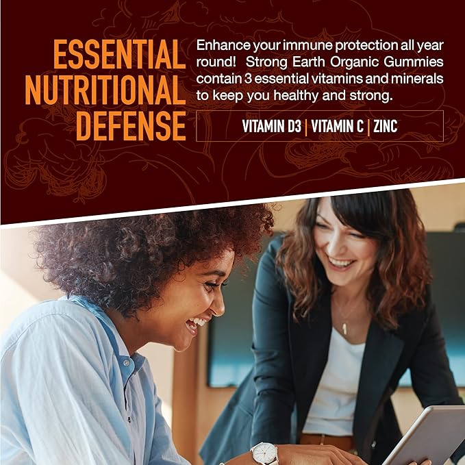 Strong Earth - Organic Immune Health Gummies with Vitamin C, Vitamin D3 Plus Zinc - Adult Immune System Boost Zinc, Vitamin C, Vitamin D Gummies - Gummy Multivitamin Immune Support Supplement (60)