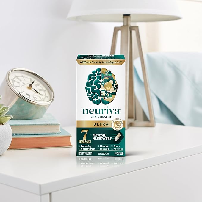 NEURIVA Ultra Decaffeinated Clinically Tested Nootropic Brain Supplement for Mental Alertness, Memory, Focus & Concentration, Cognivive, Neurofactor, Phosphatidylserine, Vitamins B6 B12, 60 Capsules