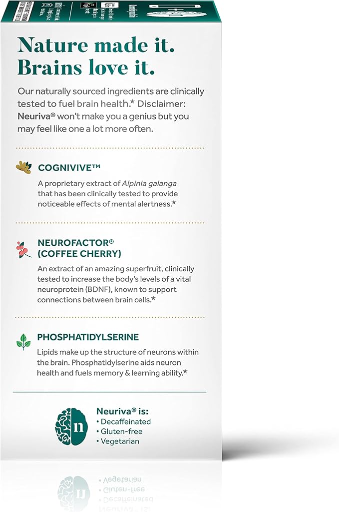 • Neuriva is a dietary supplement that is intended to be taken daily to achieve the product benefits. *These statements have not been evaluated by the Food and Drug Administration. This product is not intended to diagnose, treat, cure or prevent any disease.