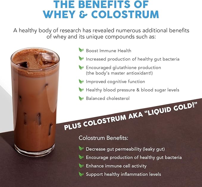 • Grass Fed Whey Protein with Colostrum: It’s time to take your health into your own hands. Strengthen your immune system, maximize your workouts, and maintain your gut health with our Grass Fed Whey Protein. We also included Colostrum which is one of the most powerful superfoods on the planet boasting many additional benefits like decreasing gut permeability (leaky gut), enhance immune cell activity, and more.