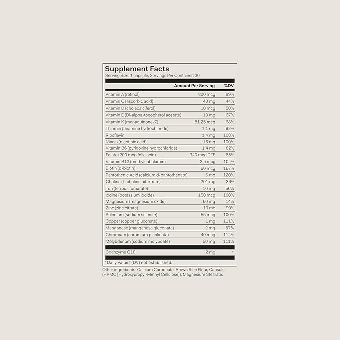 The Nue Co. Men's MULTIVITAMIN Supplement, Supports Energy, Immunity, Focus, Vegan, Gluten Free, 30 Capsules