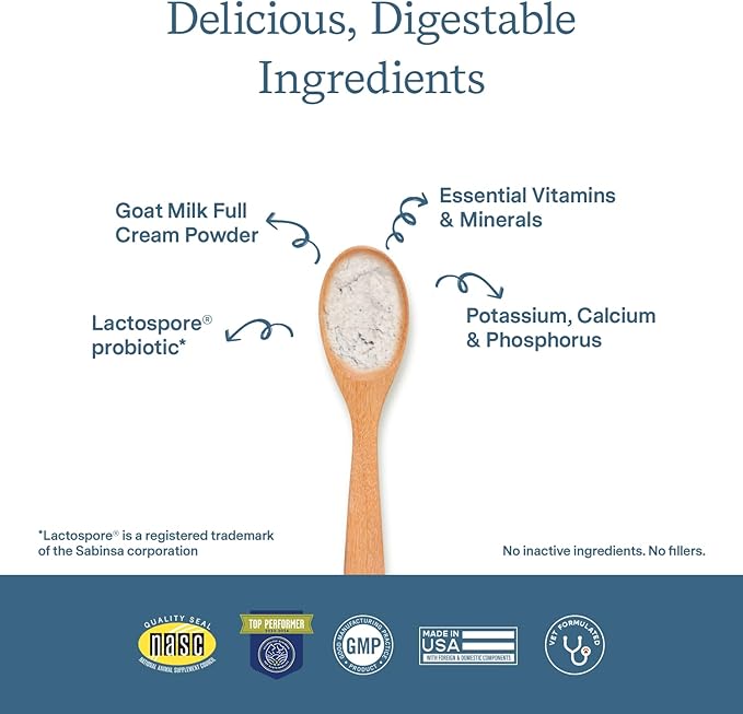 • No fillers: This cat and dog supplement is made with essential vitamins and minerals like calcium, potassium, phosphorus, plus Lactospore cat probiotic and dog probiotic; made with full cream goat milk for easy digestion