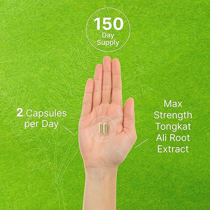 • Dosage & Servings – 300 high concentrated capsules per bottle, 2 capsule serving size, delivers 400mg tongkat ali root (longjack) from a 300:1 extract with 400mg maca root per dose, lasts up to a 150-day supply.