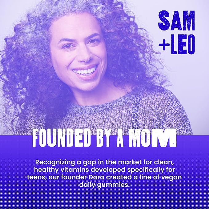 • SAM+LEO was founded by a mom. Recognizing a gap in the market for clean, healthy vitamins developed specifically for teens, our founder Dara created a line of vegan daily gummies. 1% of our profit is donated to mental health charities