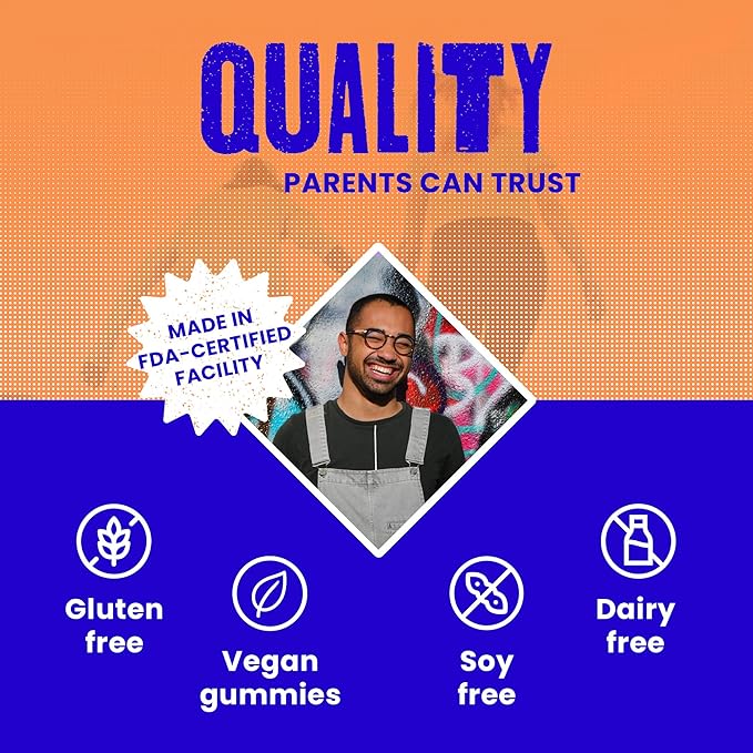 • Supports Focus and Vitality: Our all-natural, vegan gummy focus supplement for kids and teens is designed to enhance mental clarity and vitality. Vitamin B12 helps maintain healthy nerve function and supports cognitive focus, while biotin promotes overall wellness, making sure your child stays sharp and vibrant*