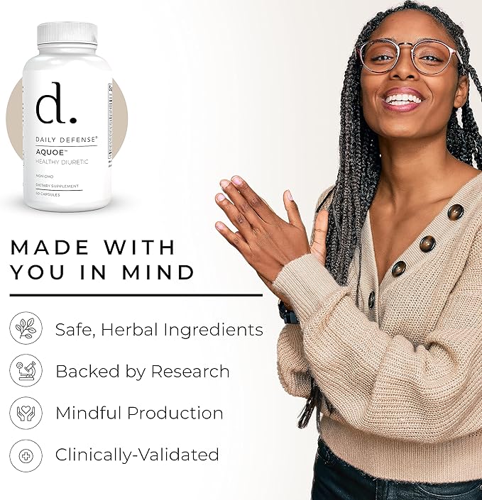 • No More Bloating and Puffy Feeling: Enjoy the freedom from bloating, puffiness, and discomfort with our Daily Defense AQUOE Water Pills water retention aid. By gently flushing excessive water away, our natural diuretics for water retention capsules promote a normal fluid balance.