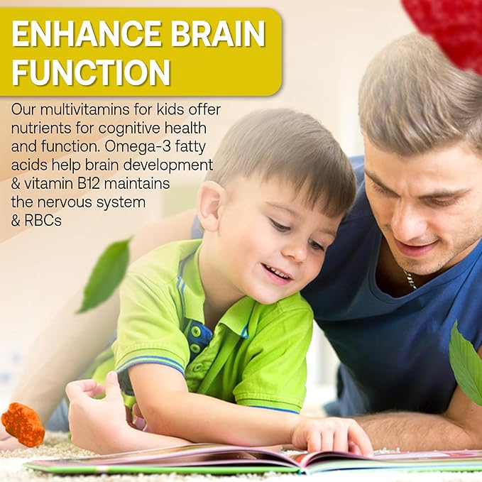 • Enhance Brain Function - Nurture Their Young Minds for Bright Futures! Our toddler multivitamins for kids offer nutrients for cognitive health and function. Omega-3 fatty acids help brain development, & vitamin B12 maintains the nervous system & RBCs