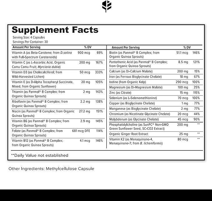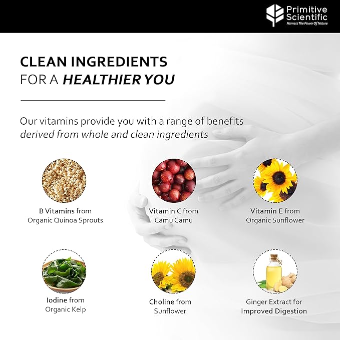 • Daily Trusted Vitamins: Enjoy nutrients derived straight from nature! Iodine from Organic Kelp, Vitamin C from Camu Camu, Vitamin E from Organic sunflower, Vitamin B from quinoa sprouts and more!