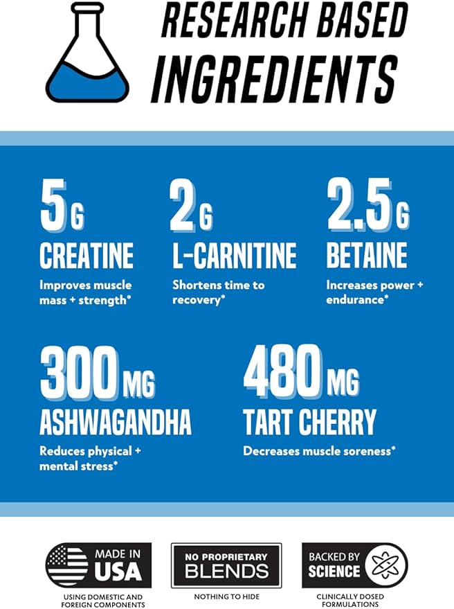 • Backed By Science: Our deliciously flavored post-workout powder for men and women contains ingredients backed by peer-reviewed scientific research at the proper dose to maximize your muscle recovery, including Creatine Monohydrate, Betaine, Tart Cherry Powder, and L-Carnitine