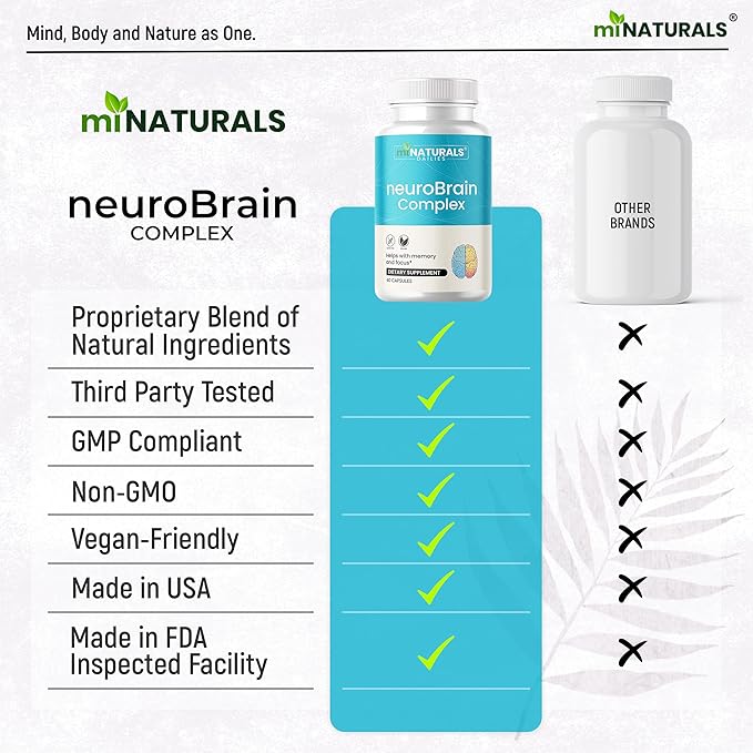 • EXPERTLY FORMULATED: miNATURALS neuroBRAIN Complex is meticulously crafted using an expert formulation. Our team of experienced professionals and scientists have carefully selected and combined a precise blend of ingredients to create a synergistic formula that maximizes its brain-maintenance benefits. Each ingredient is chosen for its specific cognitive-enhancing properties, ensuring that you receive the optimal support for memory, focus, and overall brain health.