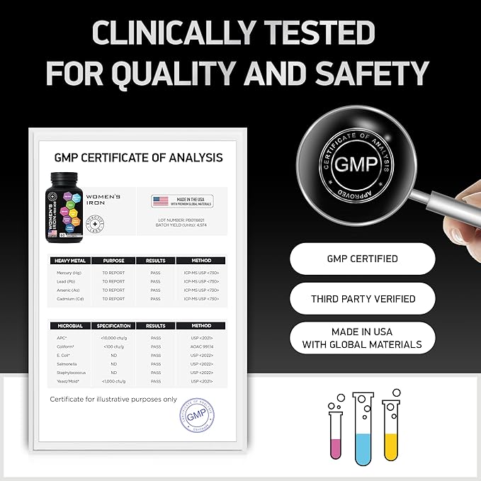 • MADE IN THE USA with premium global materials in cGMP approved facilities. Vegan, non-GMO, and gluten-free, bespoke, gentle but powerful womens iron supplements plus folate.