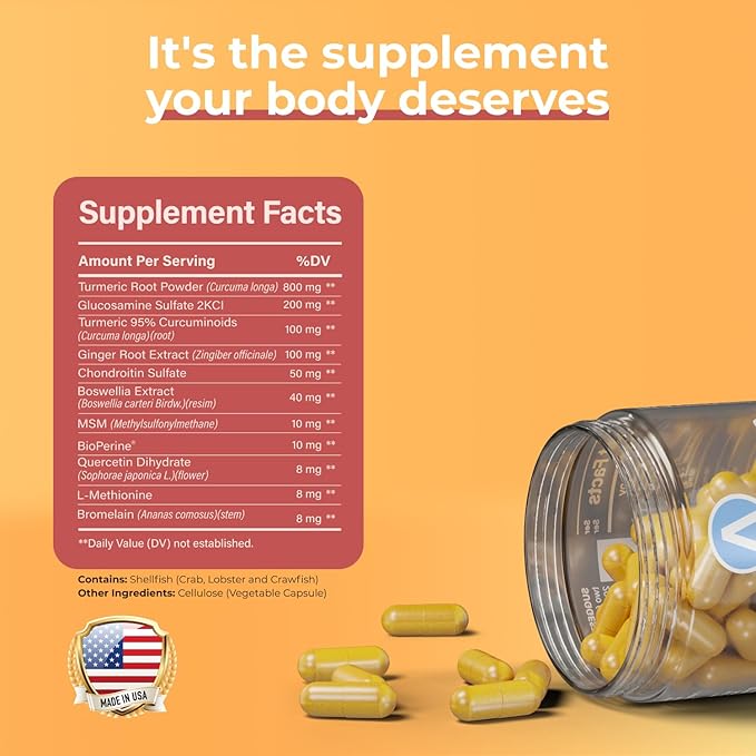 • SUPPORT FOR ACHES & PAINS: May support joint comfort within 2-3 weeks, thanks to our fast-acting blend featuring bromelain, a potent enzyme known for swiftly easing aches and enhancing joint health.