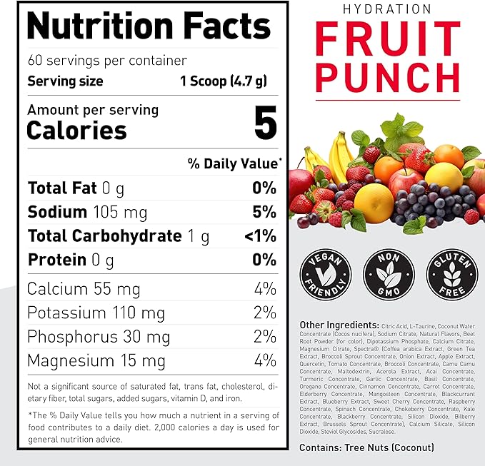 • Enhances Performance & Endurance: With hydration boosting electrolyte minerals, Hydra-Charge is a delicious and refreshing electrolyte powder to replenish fluid balance before, during, and after workouts, or any time you need it. Each serving provides five essential electrolytes and a dose of taurine. Electrolytes to help hydrate your s faster and more effectively than water alone, the other to support endurance, cellular water balance, and electrolyte utilization
