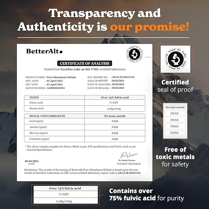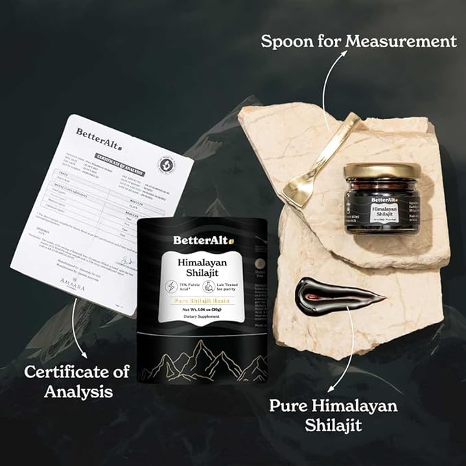 • PURE HIMALAYAN SHILAJIT RESIN: Better Alt's shilajit resin sourced from the untouched heights of the Himalayan mountains. It naturally exudes from ancient rocks, guaranteeing unparalleled quality and authenticity. Experience the potency and purity of this ancient Ayurvedic treasure, straight from the Himalayas, for a truly exceptional wellness journey with each drop.
