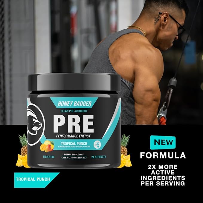 • PRE WORKOUT POWDER WITH NO FILLERS: 2X Strength formula, reach your focus, intensity, energy, and endurance fitness goals with Honey Badger keto pre workout for men and women. Use pre workout, during your workout, post workout, or for anytime energy when you need a performance boost or a quick pick me up.