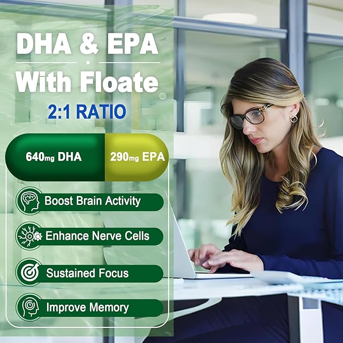 • BRAIN HEALTH: A breakthrough nourishing neuronal development formula designed to enhance your cognitive. Natural and sustainable DHA, an essential building block of brain tissue, which plays a key role in neurotransmitter synthesis, promoting overall brain health. The synergistic support of Vitamins E, A and D3 unlock the thinking limitless potential.