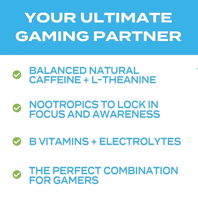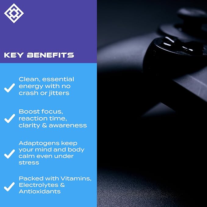 • CLEAN, ESSENTIAL ENERGY: Blended with 160mg of Natural Caffeine, 5 Essential B Vitamins, Electrolytes, Antioxidants, Powerful Nootropics, and Potent Adaptogens, our Pre-Game Energy is perfectly designed for gamers. From casuals to professionals.