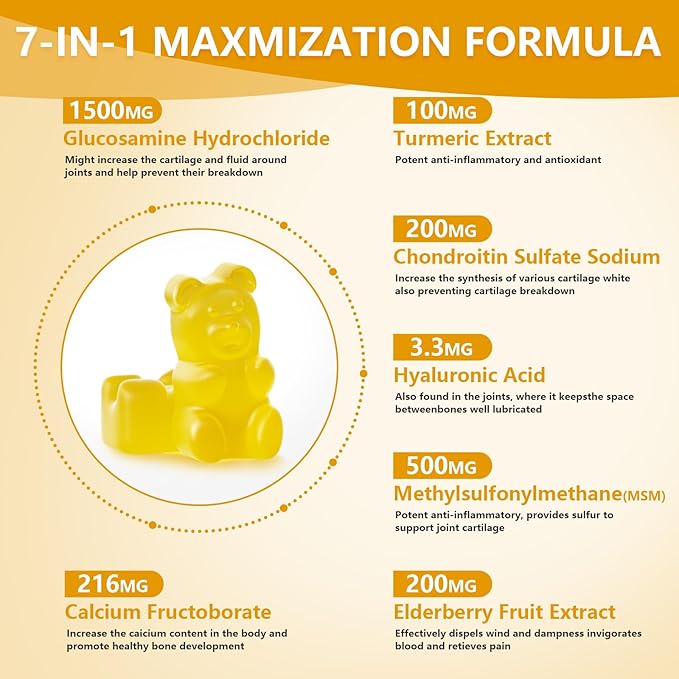 • DELICIOUS AND EASY TO TAKE - Swallowing pills is a chore, and the delicious glucosamine chondroitin gummies are undoubtedly an excellent substitute, based on pectin, with a pleasant raspberry flavor, pleasant taste, easy to chew, and non-stick. These cuddly bears are tasty and nutritious and can help you stay active and supplement a healthy lifestyle!
