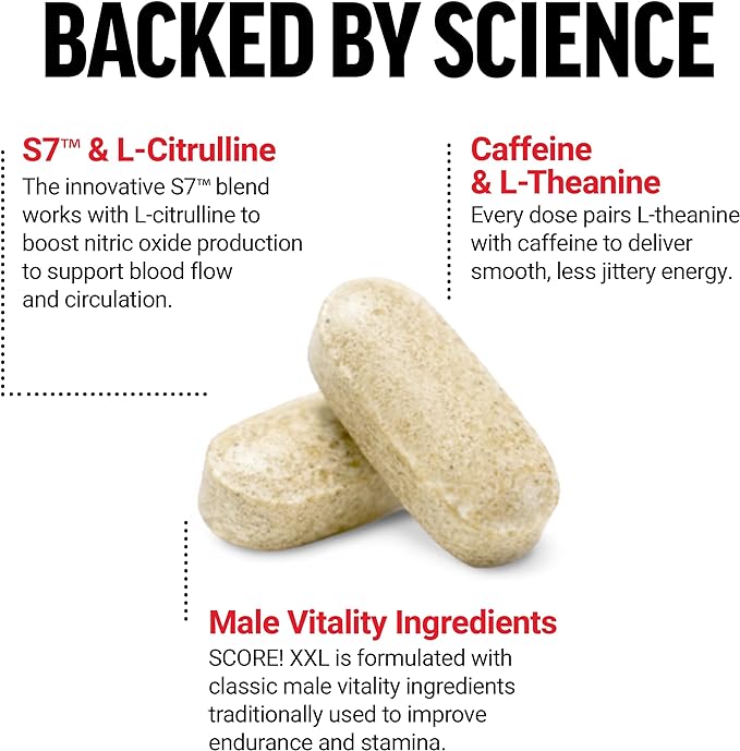 • MADE IN THE USA & THIRD-PARTY TESTED: SCORE! XXL is made in America in GMP-certified manufacturing facilities using globally sourced ingredients. All ingredients go through rigorous testing to validate their potency and purity.