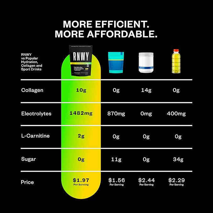 RNWY Lemon Lime Foundation Collagen Powder, Daily Joint Support with Electrolytes and Multivitamin, 10g Collagen Peptides, Sugar Free, 30 Servings