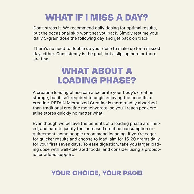 RETAIN Creatine Monohydrate Powder (60 Serv) - 100% Micronized High Absorption Creatine Monohydrate, Lean Muscle Mass & Recovery