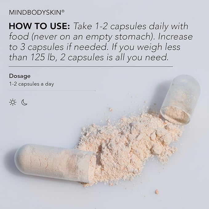 • Calming + Clearing - MINDBODYSKIN is a revolutionary, natural way to control acne at its source. With just one capsule, it simultaneously targets oil, digestion, detoxification, stress, PMS, and hormones.