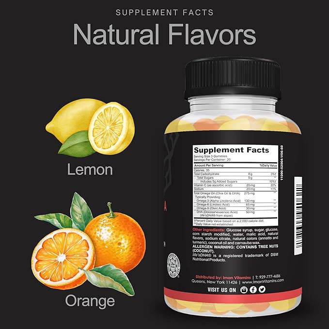 • Unleash Vitality, One Gummy at a Time - Immerse your senses in the zesty burst of lemon and orange. These aren't just gummies – they're your daily dose of wellness, packed with 275mg of Total Omega Oil. Elevate your energy, fuel your brain, and indulge in a healthier you.
