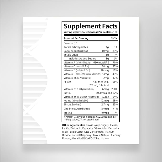• ✅ HAIR VITAMINS specially designed to Help Support Hair Growth with Biotin 5000 mcg & Vitamin A, C, D, E. Perfect as a daily Gummy Vitamins with a delicious Raspberry & Blueberry Flavor
