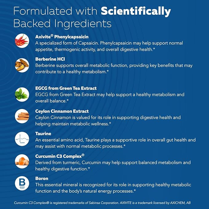 • CLINICALLY VALIDATED NUTRIENTS & BOTANICAL EXTRACTS | GLP-Activate is formulated with clinically validated ingredients that support metabolic health and may support GLP production. These ingredients include Phenylcapsaicin, Berberine Extract, Green Tea Extract, Ceylon Cinnamon, Boron, Curcumin & More…*