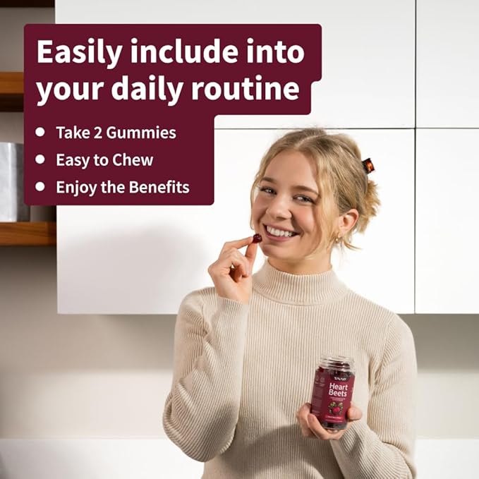 Snap Supplements Heart Beet Gummies, Blood Flow and Blood Circulation Supplements, Heart Health Supplements, 60 Count