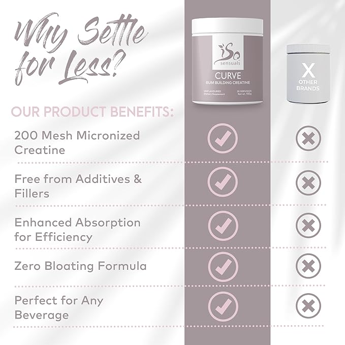 • Mix and Sip with Any Beverage: Creatine for women just got more convenient. Unflavored and versatile, IsoSensuals CURVE can be stirred into your favorite drink, transforming it into a potent booty builder without changing the taste.