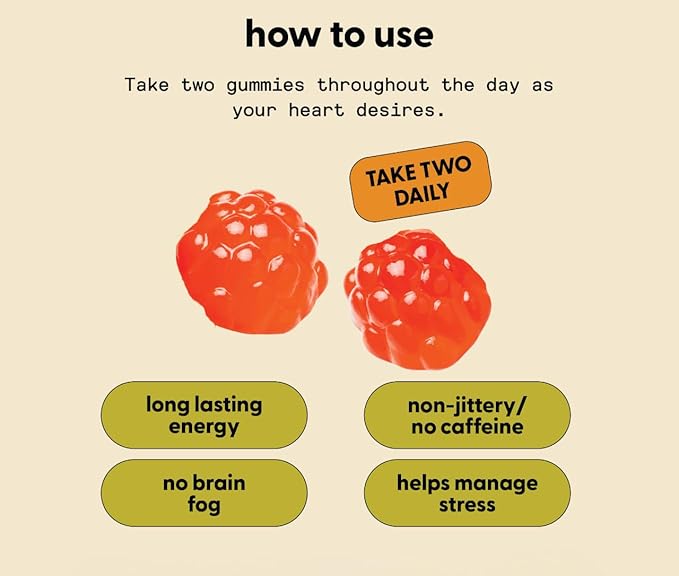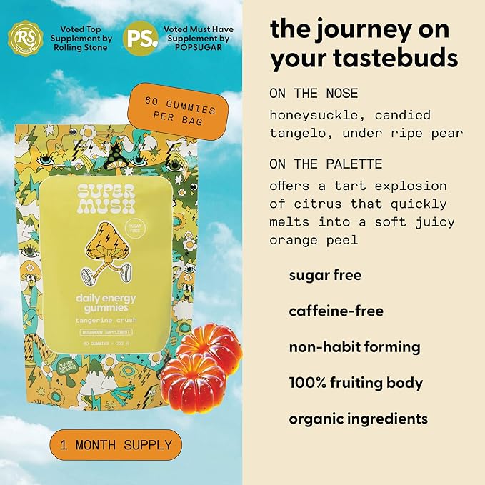 • ORGANIC, VEGAN, GLUTEN-FREE, SUGAR-FREE, ZERO CALORIES - With a burst of natural tangerine flavor, our lions mane supplement energy gummies support vitality deliciously. Featuring plant-based ingredients like pumpkin and carrot juice for vibrant color, they are crafted without artificial additives. Sugar-free, non-GMO, vegan, and free of common allergens, this l theanine supplement with lion's mane extract offers a wholesome, enjoyable boost whenever you need it.