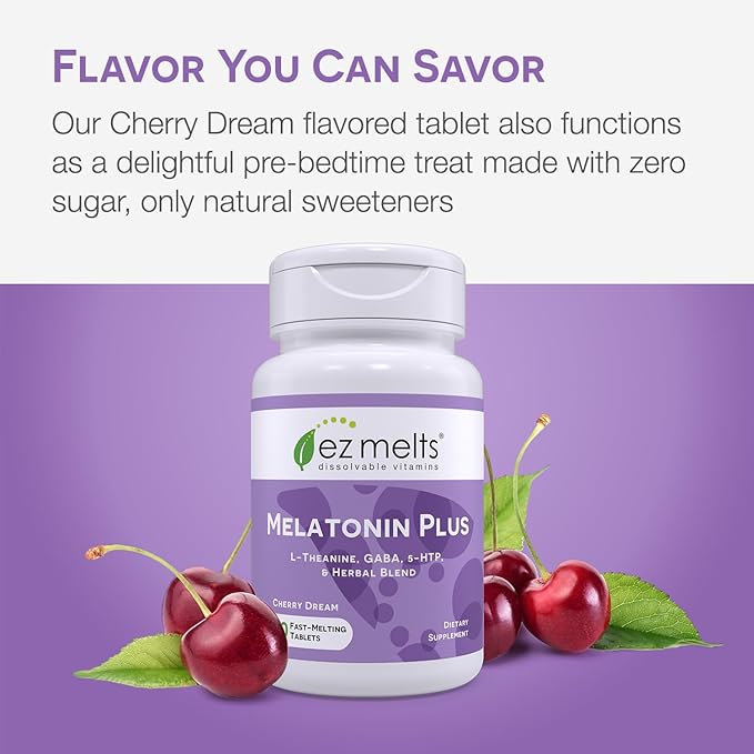 EZ Melts Dissolvable Melatonin Plus, Sugar-Free Sleep Support with Melatonin 5mg, L-Theanine, GABA, 5-HTP, and Herbal Blend, 60-Day Supply