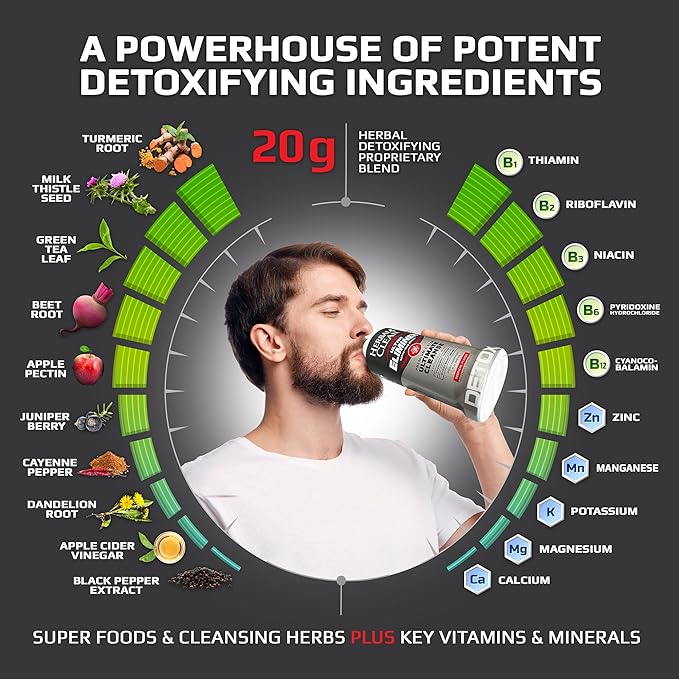 • VITAMIN AND MINERAL BLEND: This premium detox drink is formulated with vitamins, minerals and herbs, including beet root powder, black pepper extract, turmeric root extract, milk thistle, creatine, green tea extract, and many more.